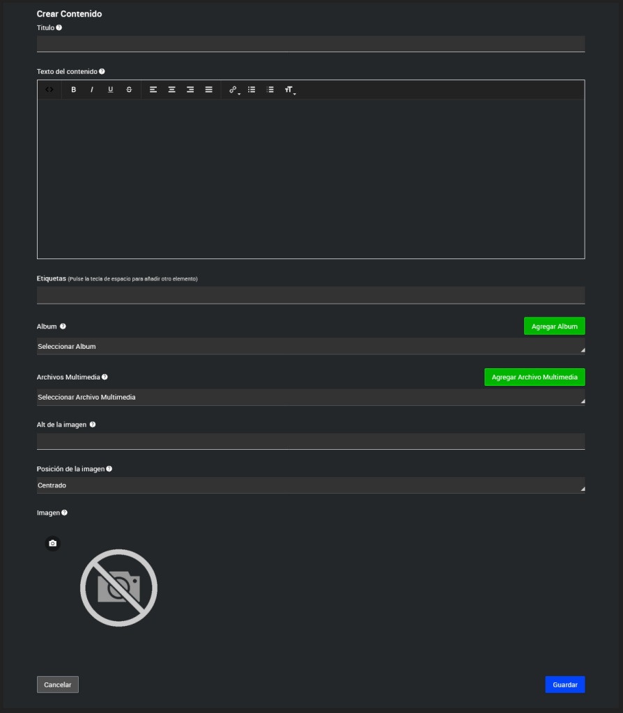Nota: La ventaja de presionar el botón verde es que limpia todos los campos del formulario, ideal si el contenido que estás creando no te convence y quieres empezar de cero.