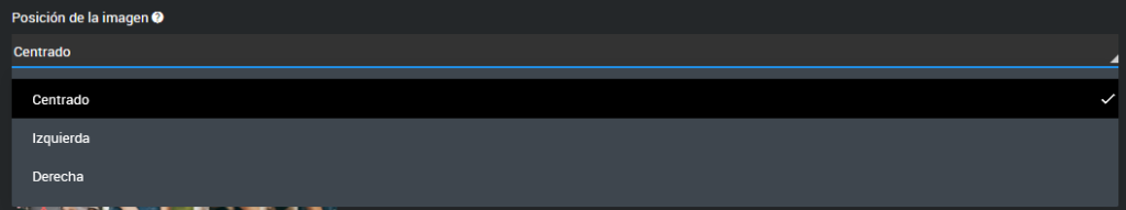 Posición de la Imagen: Decide cómo quieres que tu imagen se muestre en relación con el texto. Puedes elegir centrada, a la izquierda o a la derecha del contenido.