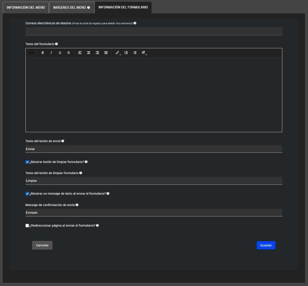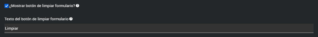 Mostrar botón limpiar formulario: Si desmarcas esta opción, el botón para borrar los campos del formulario no se mostrará.
