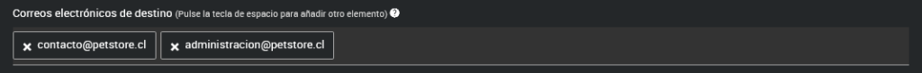 Correo Electrónico: Ingresa las direcciones de correo a las que se enviarán las respuestas de los usuarios. Además, todas las respuestas quedarán registradas en el módulo de formularios de Creaweb, incluso si hay algún error de envío.