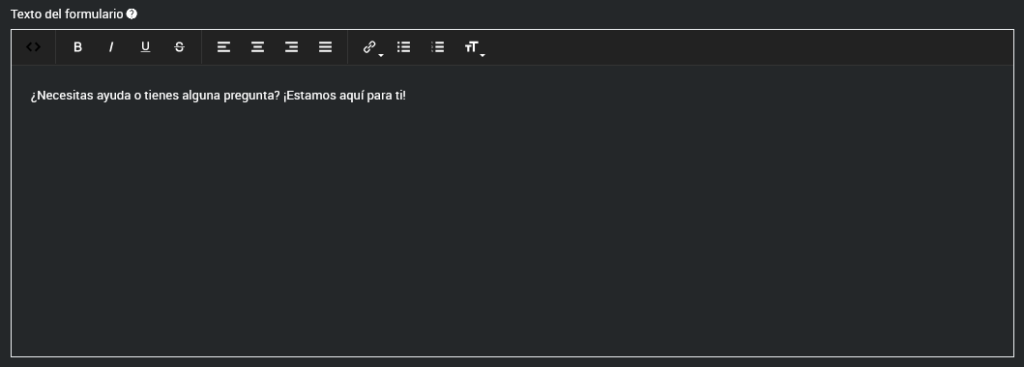 Texto del Formulario: Escribe un mensaje complementario o informativo que aparecerá en el formulario. Su ubicación y visualización pueden variar según el tema de tu Creaweb.