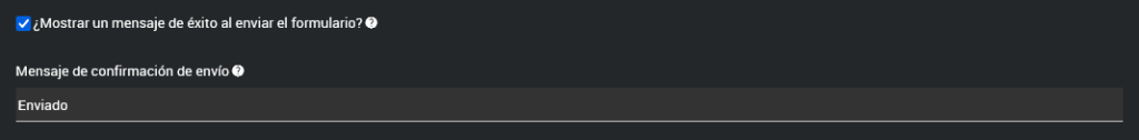 Mostrar mensaje de éxito al enviar el formulario: Si desmarcas esta opción, el mensaje de confirmacion de envio no se mostrará.