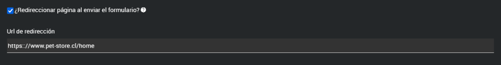 Redireccionar Página al Enviar: Si activas esta opción, deberás ingresar una URL. Una vez que el usuario envíe el formulario, será redirigido a esa página. Si la casilla está desmarcada, el usuario permanecerá en la misma página.