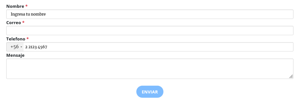El diseño y los estilos de tu formulario de contacto, incluyendo la visualización de los campos, pueden variar considerablemente dependiendo del tema que tengas definido en tu Creaweb.