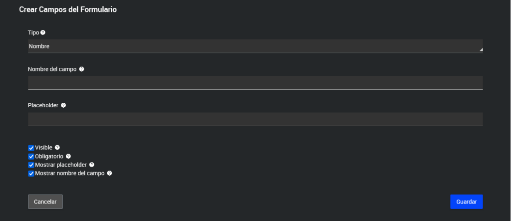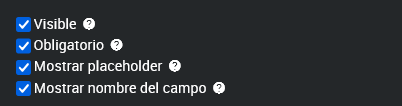 Visible: Desmarca esta casilla si deseas que el campo no sea visible en el formulario.