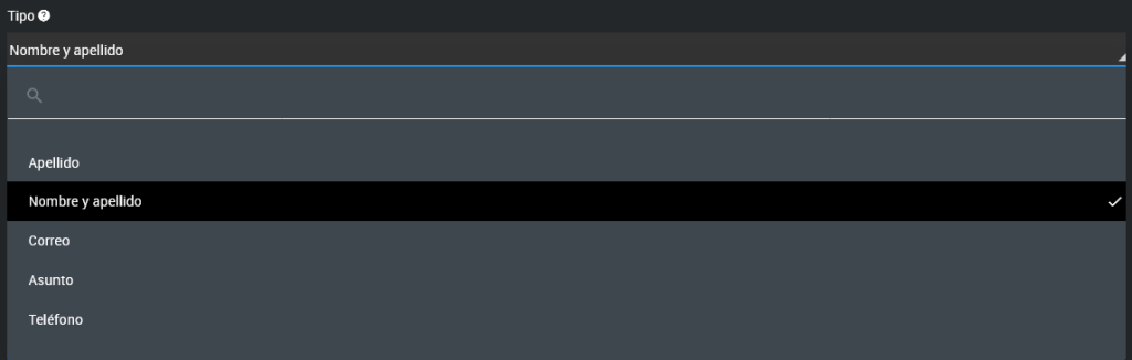 Tipo: Selecciona el formato del campo (por ejemplo, texto, correo electrónico, número, fecha). Esto determinará el tipo de información que los usuarios pueden ingresar.