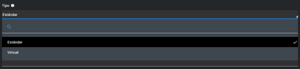 Tipo: Selecciona el tipo de producto que vas a vender: Estándar se usa para artículos físicos que requieren un proceso de envío, mientras que Virtual es la opción ideal para productos digitales o servicios que se entregan en línea.
