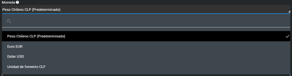 Moneda: Selecciona la moneda en la que se mostrara el precio del producto.