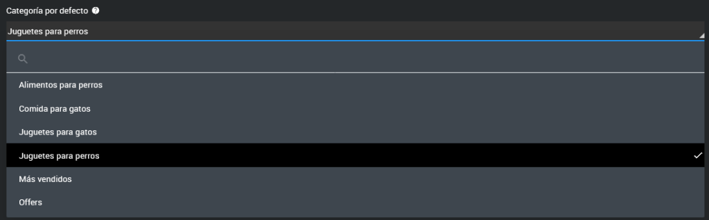 Categorías por defecto: Elige uno de los menús predefinidos para clasificar tu producto. Estos menús sirven para organizar tu catálogo de manera más eficiente.