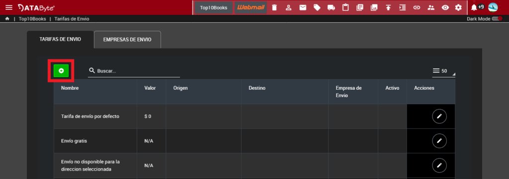 - Haz clic en él para entrar a la sección “Tarifas de Envío”.